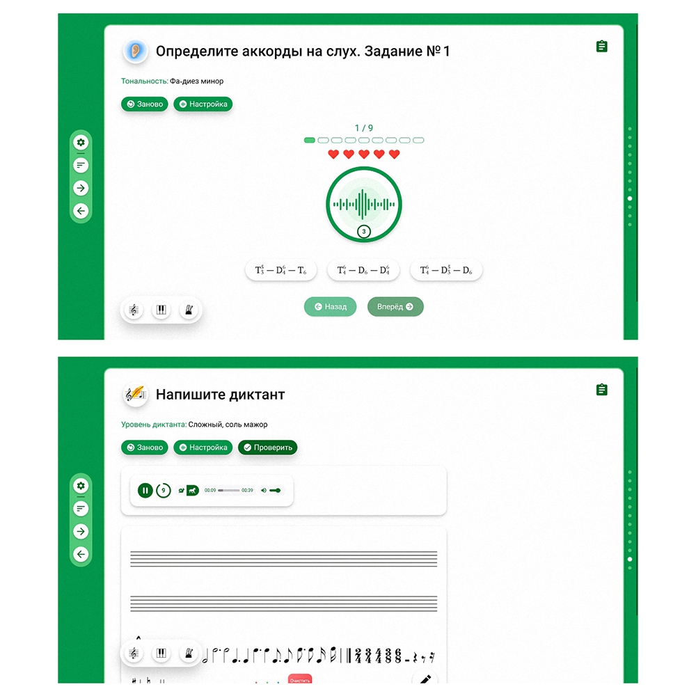 - обучающий материал (тексты, ноты, иллюстрации, аудио- и видеофрагменты);
