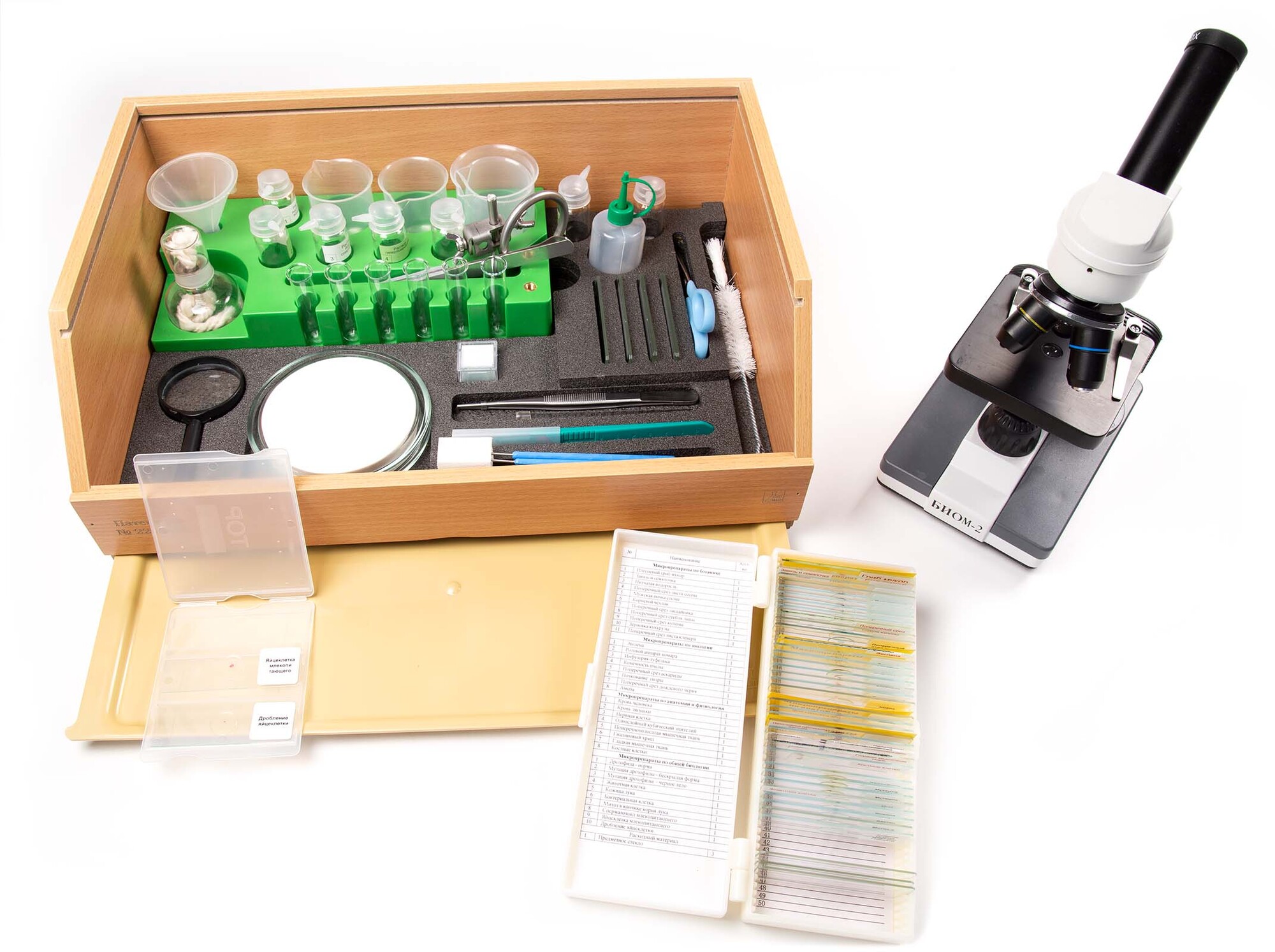 Биологическая микролаборатория с микропрепаратами и микроскопом