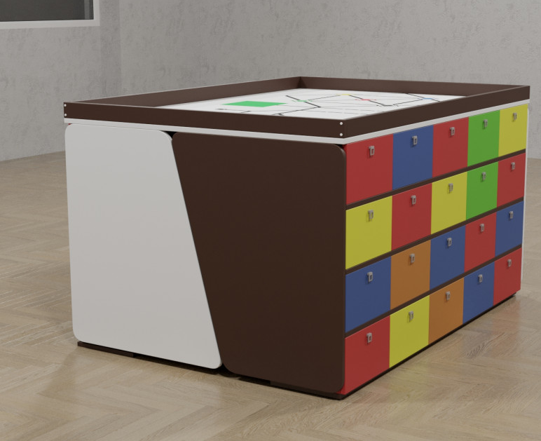 Стол этой модели предназначен для конструирования и робототехники детьми от трех лет. Стол поможет на кружках по робототехнике, различных онлайн уроках по изучению и конструированию роботов. Также он будет крайне полезен для детских садов и центров реабилитации, которые занимаются проведением занятий по раннему конструированию.
