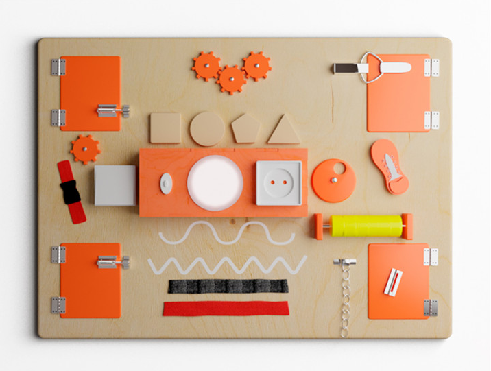 • Покажите ребенку различные материалы бизиборд со световыми эффектами: ткань, металл, дерево, тем самым ребенок улучшит моторику пальчиков и кистей.