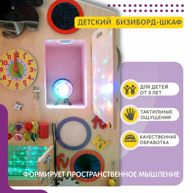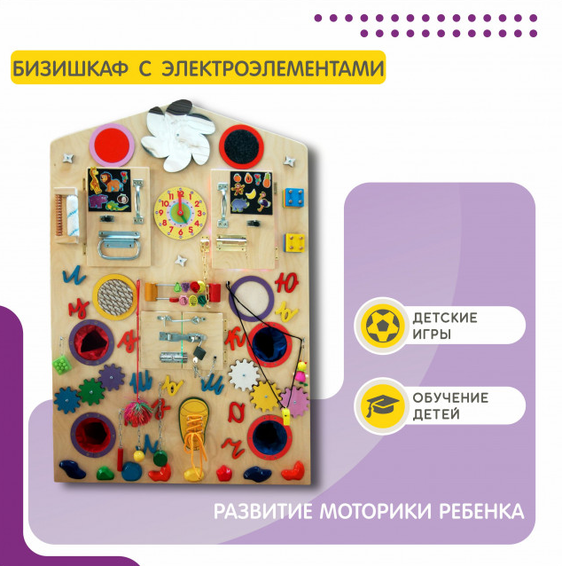 Бизишкаф идеально подходит для детских садов, школ, игровых комнат и домашнего использования. Это универсальный инструмент, который поможет детям развиваться, веселиться и учиться одновременно.