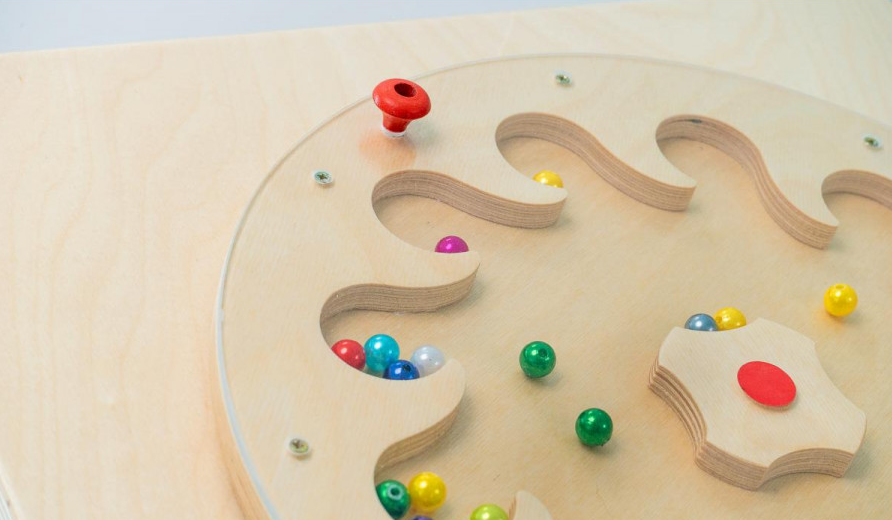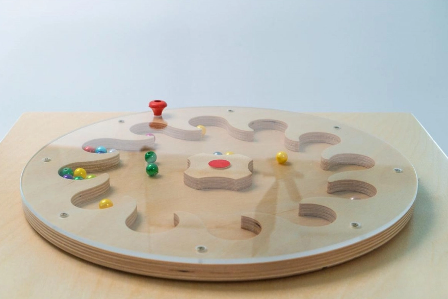 Тактильно-развивающая панель-лабиринт представляет собой деревянную панель с углублением в форме цветка и цветными шариками. Задача ребенка заключается в перемещении шариков по лабиринту внутри панели. Тактильная панель может быть использована в качестве инструмента для саморегуляции и снятия стресса у детей, помогая им успокоиться и сосредоточиться. Игра с таким модулем требует концентрации на задаче и повышает уровень внимания у детей.