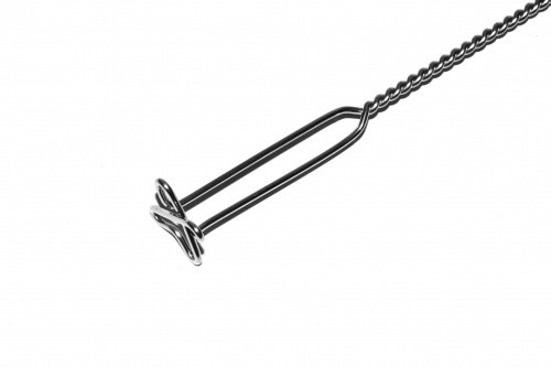 Зонд « Крестовина» служит для массажа мышц языка, скул, щек. Используется при массаже средней, прикорневой частей языка, что позволяет воздействовать на мышцы, обеспечивающие подъем языка. Нажимая на язык и отодвигая его назад, мы заставляем сокращаться и работать мышцы указанных областей языка. Крестовиной можно сжимать мышцы языка, удерживая их в сжатом положении. С помощью этого зонды выполняются надавливающие, пружинистые возвратные движения, надавливающие круговые. Зонд используется для постановки звуков Г, К, Х, и шипящих звуков. Степень нажима зависит от состояния мышц: чем ниже тонус, тем интенсивнее нажатие. Обрабатывается кипячением с предварительным замачиванием в дезинфицирующем растворе.