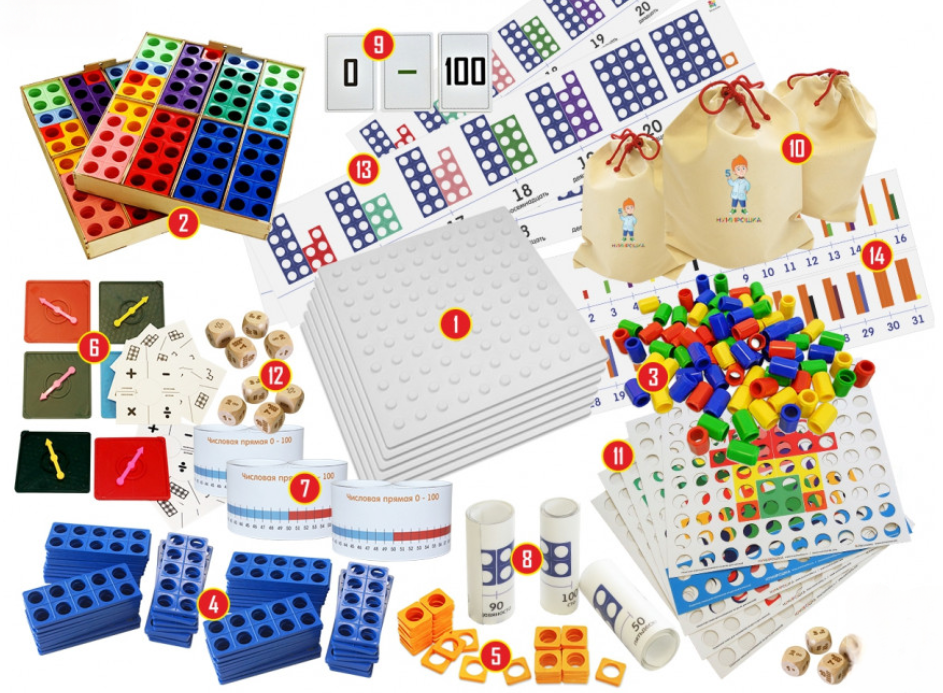 2. Комплект из 80 цветных пластиковых числовых форм - 2 шт. Это стандартный набор для изучения чисел, все формы можно удобно группировать, создавать различные комбинации и примеры. Изделия выполнены из высококачественного ABS пластика методом литья пластика, все формы имеют индивидуальный цвет. – 1 шт. Комплект из 80 числовых форм поставляется в составе: Формы "Единица", "Двойка", "Тройка", "Четверка", "Пятерка", "Десятка" - по 10шт; Формы "Шестерка", "Семерка", "Восьмерка", "Девятка" – по 5 шт.