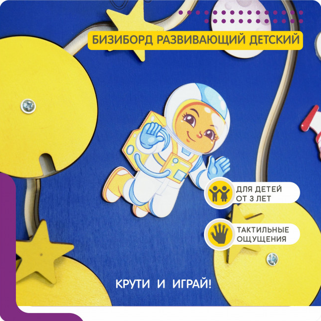 Погрузитесь в захватывающий мир космоса вместе с нашей тактильной развивающей панелью! Какой ребенок не мечтает стать космонавтом и отправиться на Луну? Теперь у него есть такая возможность – создавать свои космические корабли, летать по звездам и изучать планеты прямо на домашней игровой площадке. А в процессе игры он будет развивать мелкую моторику, координацию движений и воображение, что несомненно положительно скажется на его будущем.