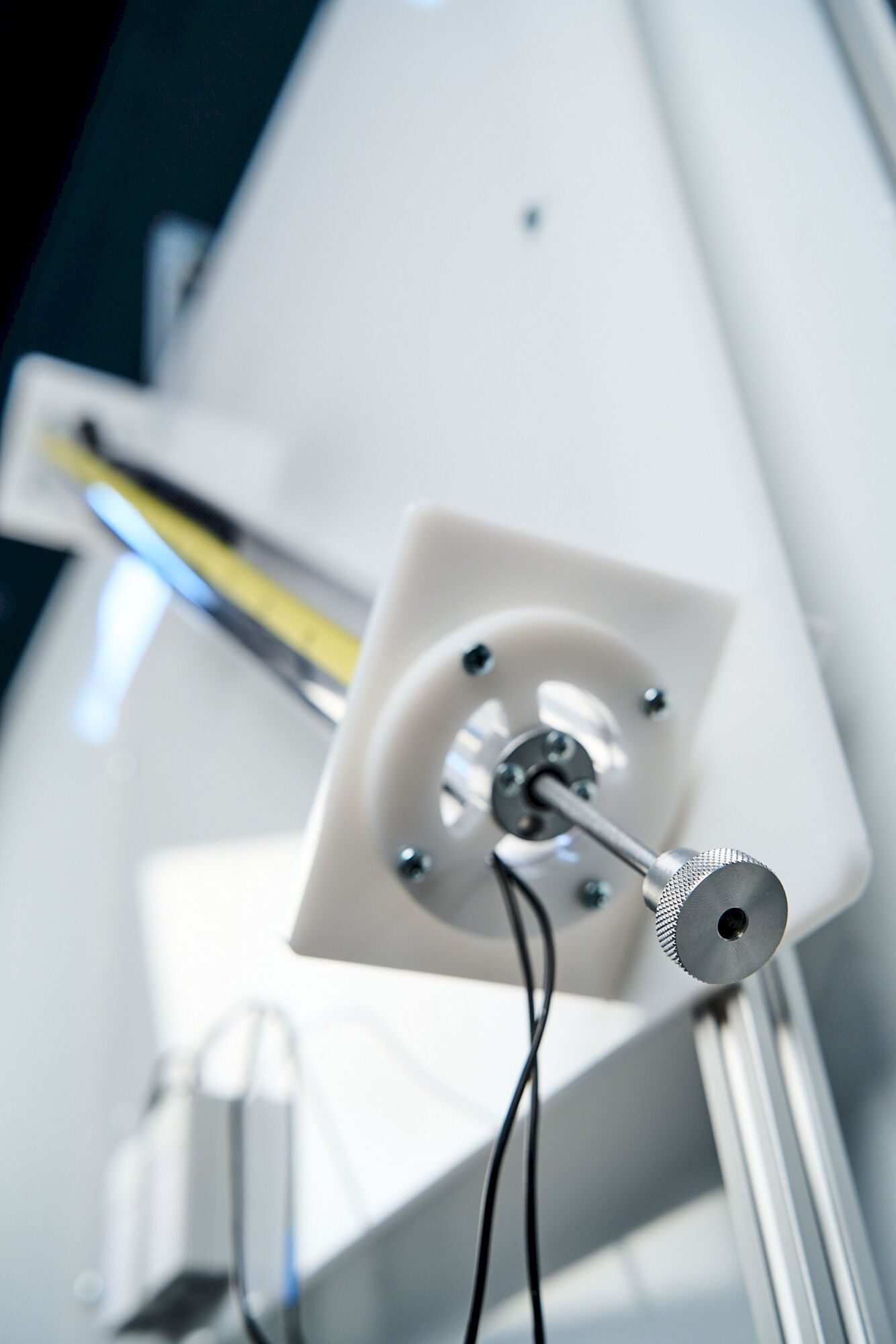 На каркасе из металлических труб установлена звуковая труба, в которой реализуется распространение звуковой волны и обеспечивается измерение скорости звука двумя методами. Контроль параметров звуковой волны в двух точках пространства осуществляется с помощью двухканального датчика звука, имеющего два микрофона. Конструкция установки позволяет перемещать одиниз микрофонов вдоль трубы и определять его координату по специальной шкале. Источником звука служит динамик, который под ключается к USB-порту компьютера и управляется с помощью программного обеспечения.