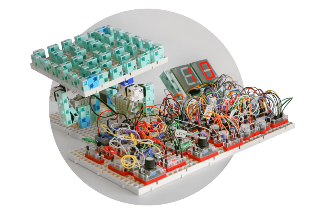Набор представляет собой комплект электронных компонентов и соединительных деталей-кубиков. Используя эти элементы, пользователь имеет возможность собирать электрические схемы и изучать процессы, происходящие в них, а также конструировать отличные друг от друга модели, управляющиеся этими схемами, описанными в методическом пособии.