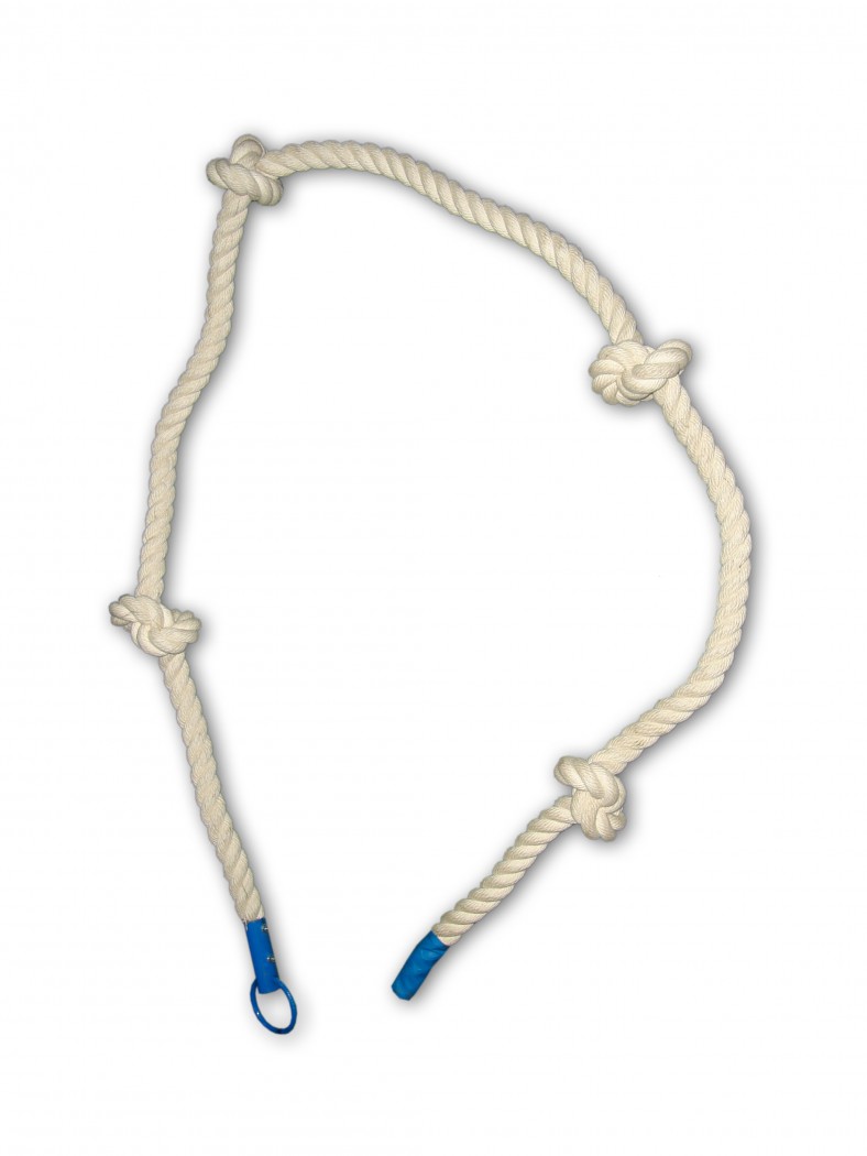 Для подвески каната служит стальная петля, закреплённая в металлических щеках одного из концов каната. На другом конце каната закреплён декоративный чехол. Опираясь на узлы, лазить по такому канату легче, чем по обычному гладкому.