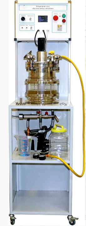 Стенд позволяет изучить процесс абсорбции углекислого газа водой в аппарате с механическим перемешиванием.